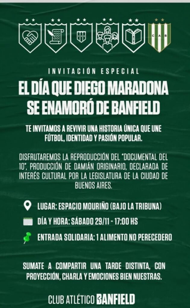 La jornada está organizada por Banfield Solidario, la Subcomisión de Historia y Museo, la Subcomisión de Vitalicios, Cultura y Socios, con el objetivo de preservar y difundir uno de los capítulos más emotivos vinculados al paso de Diego por el club.