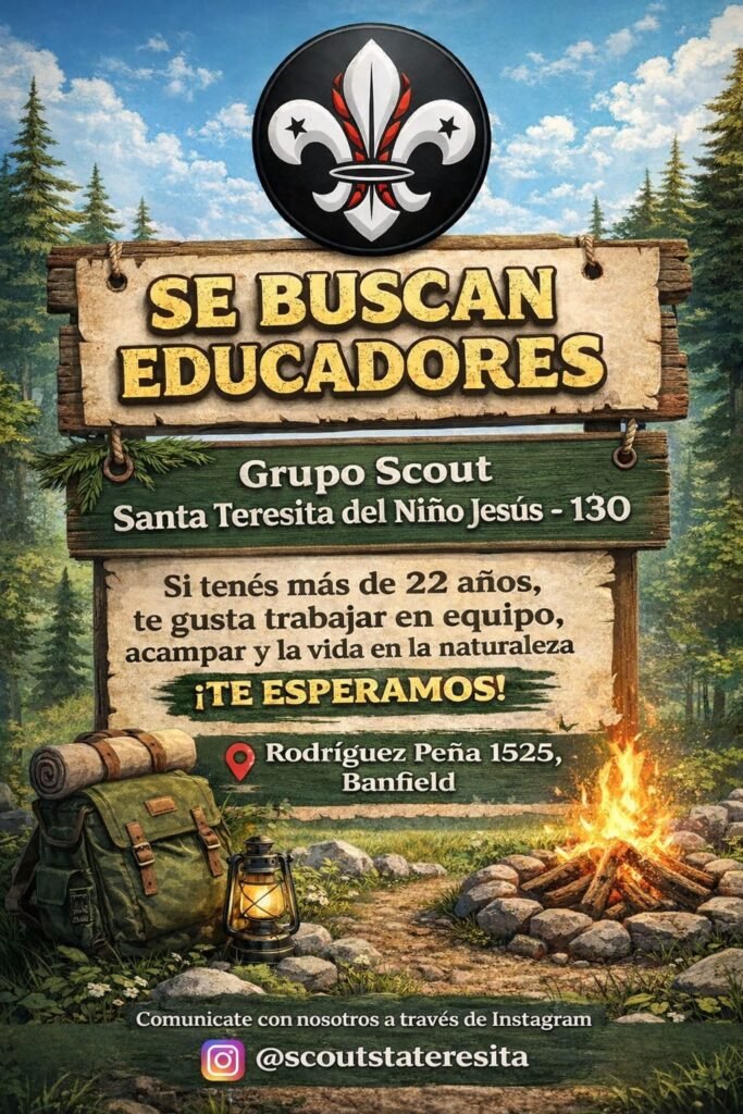 El Grupo Scout Santa Teresita del Niño Jesús N° 130 lanzó una convocatoria destinada a personas mayores de 22 años interesadas en sumarse como educadores al movimiento scout.