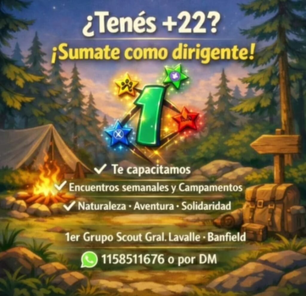 El 1° Grupo Scout Lavalle, reconocido como el primer grupo scout de la Argentina y con sede en Banfield, lanzó una convocatoria abierta para incorporar educadores y educadoras interesados en acompañar la formación de niños, niñas y jóvenes del barrio.