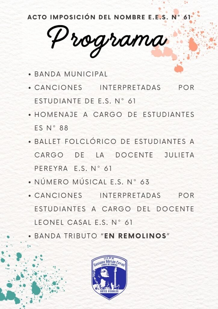 La comunidad educativa se prepara para vivir una jornada inolvidable. Habrá música, intervenciones artísticas y la participación especial de la Banda Municipal, acompañando a docentes y estudiantes en un acto pensado para honrar a alguien que enseñó a escuchar y a mirar el mundo de otra manera.