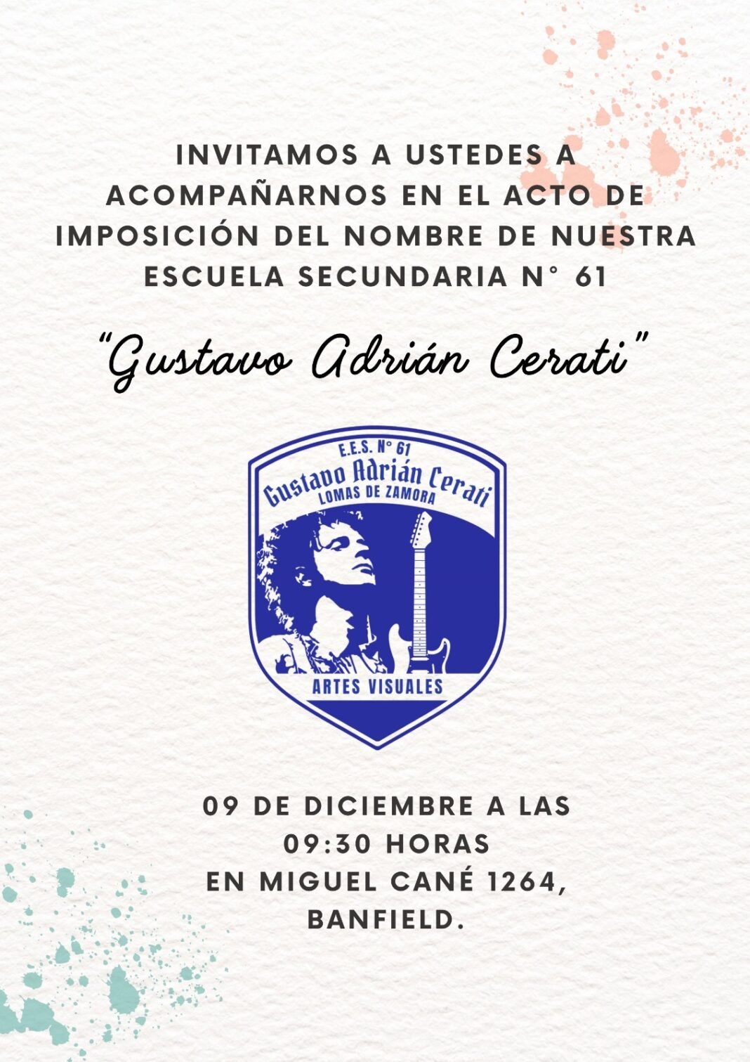 La elección no es casual: Cerati trasciende la música. Fue un creador inmenso, un artista capaz de convertir cada sonido en un territorio emocional. Su nombre vibra, conmueve y recuerda que la sensibilidad también construye futuro. Que una escuela pública de Banfield lo elija como faro es una declaración de principios: apostar por el arte, la creatividad y la inspiración como motores de aprendizaje.